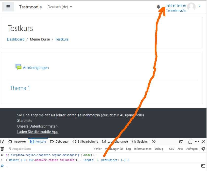 - $('input[type=hidden][name=edit]').length == 1 ⇒ Trainer oder Lehrerrolle (der Bearbeiten Button ist dann im Kurs verfügbar, wenn nicht, wird 0 zurückgegeben)