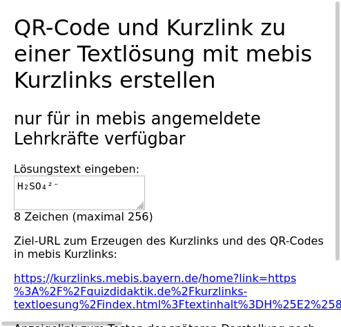 1. Lösungstext eingeben und Link zum Erzeugen aufrufen