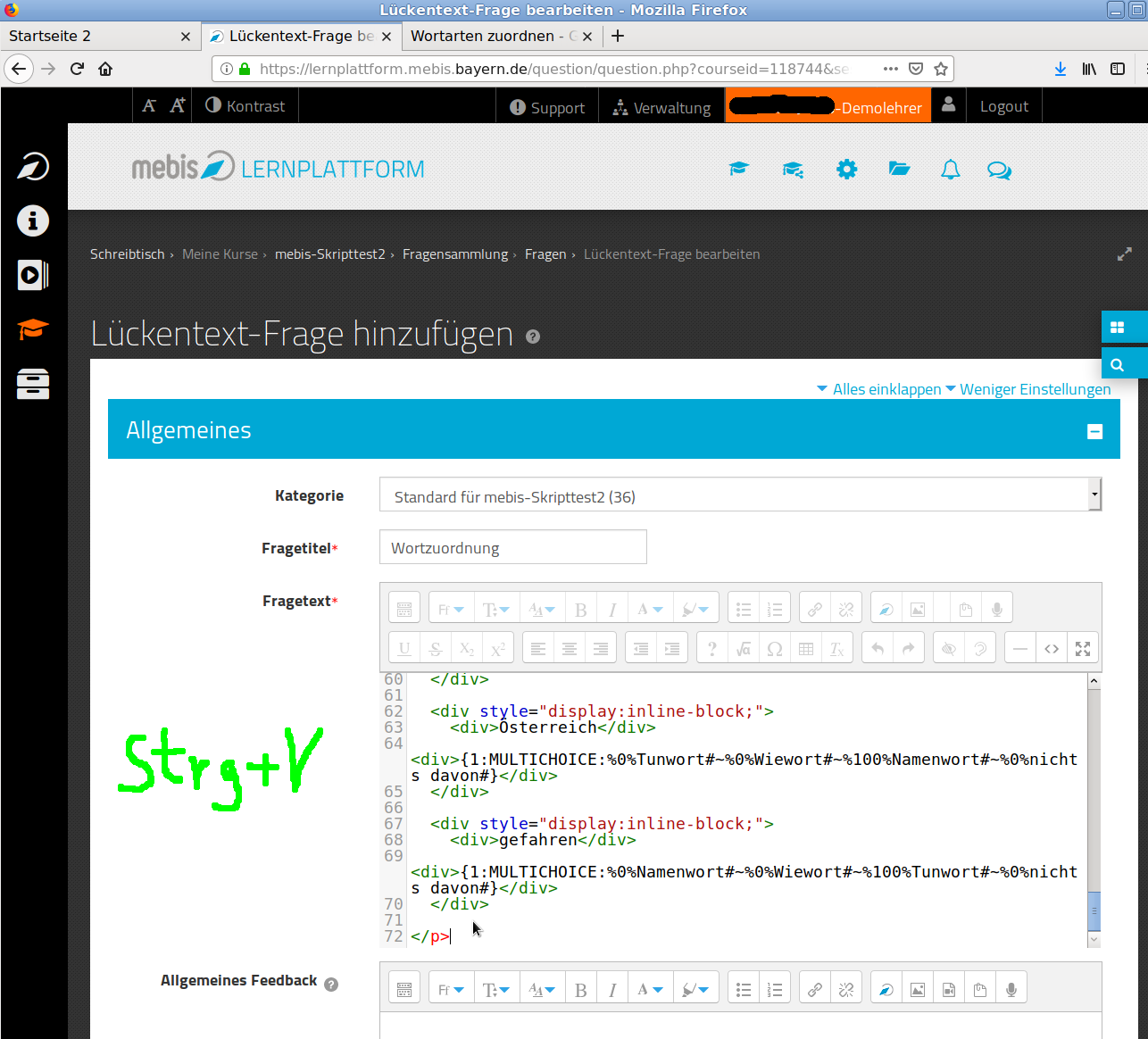 7 Fragenquelltext einfügen und Frage speichern (in mebis)